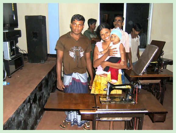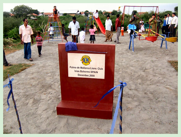 I had brought with me a lot Euros from the money given to me by the Clubs for the families, when I went to change the money I got a huge bag full, as the highest denomination, is 2.000 Rupees, which is about 12 Euros. I spent all that money buying sewing machines, paint for the houses (after 4 years it need it), cloth, a large TV set and musical set for the community center, plus 50 chairs and 3 tables, besides other less important items. But the magic day was the last one, when I arrived at the Singha village with the Lions of Empilipitiya, all the village people where waiting for us to arrived, there was magic in their faces, with this beautiful smile these people have, if you add the moment of getting some presents, you have no idea the striking sensations you can receive. It was a delightful moment. A little later the DG Nimal from District 306 A2 arrived with the CC Ian, for the official inauguration. We cut the ribbon and gave a little speech. After we went to inaugurate the Children’s play ground, what can I say about happy children....... I will leave it to your imagination; we also saw the new shops and then went back to the community Center to give out all their presents we had bought.