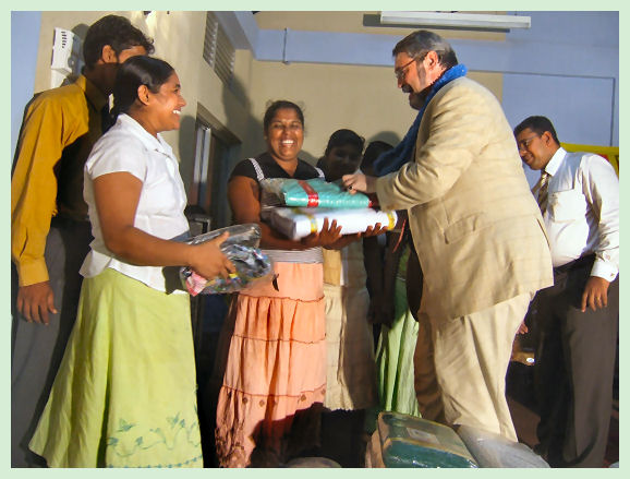 wish you all MY TRIP TO SRI LANKA Just after attending the ISAAME Forum in Hyderabad (India), I went to see the families of the village the Spanish Lions have built for the victims of the Tsunami. I went there two years ago, and I was so very emotionally effected, that I have promised myself to come back and try to quip on helping these families that I have meet. Two years ago I visited each one of these families, and I did buy some presents and sent some money to help them out. You must understand that all of them have lost everything in the Tsunami, and many have lost family also. Another thing I realized when I was there, was that theses houses were built inland and far away from any village, and it was necessary to complete this village we had started. So talking to the Lions of Sri Lanka, we agreed that the minimum necessary, as to build a community center, some shops, public bathrooms and a play ground for children. So I asked the Spanish Lions to be once more generous and help finish what we had started, we succeeded and got the money. So the work was done. I also asked each one of the Clubs that had sponsored a house to give me a little money to buy them something locally. I arrived on the 8 of December and next day went to the south, where I was received by the local Lions in a very nice act, where some children had organized and show, imitating me, very funny and good. Immediately after I went to see the houses, as I wanted to visit each one of the houses to see how was the family doing and what could be there needs. We have build 100 houses, so to visit them it toke me almost three days, none stop, from early in the morning to the night, without even having lunch, just some juice and a couple of bananas.