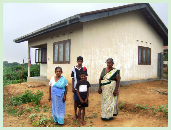 Casa construida por el Leonismo Español en Sri Lanka en colaboración con LCIF, para los damnificados del Tsunami del año 2004 CLUB DE LEONES CIUDAD DE CEUTA 1.- Nombre del cabeza de familia: Se me olvidó coger su nombre 2.- Personas que habitan la Casa: 4 Un mujer que tiene 50 años. Tienen dos niños, niños uno de 15 y 7 años. Además de la abuela, de 75 años. 3.- Qué hacían anteriormente y qué hacen en la actualidad: El marido murió de un ataque de corazón. 4.- Otros temas de interés: Sin comentario. Segunda visita realizada entre el 9 y 11 de Diciembre del año 2009 La otra vez no estaban, por lo tanto no llegue hacer un informe. Pidió una máquina de coser. Se le entregó una máquina de coser, dos latas de pintura. ID Luis Domínguez Calderón