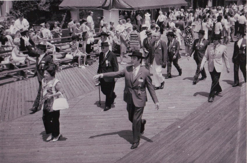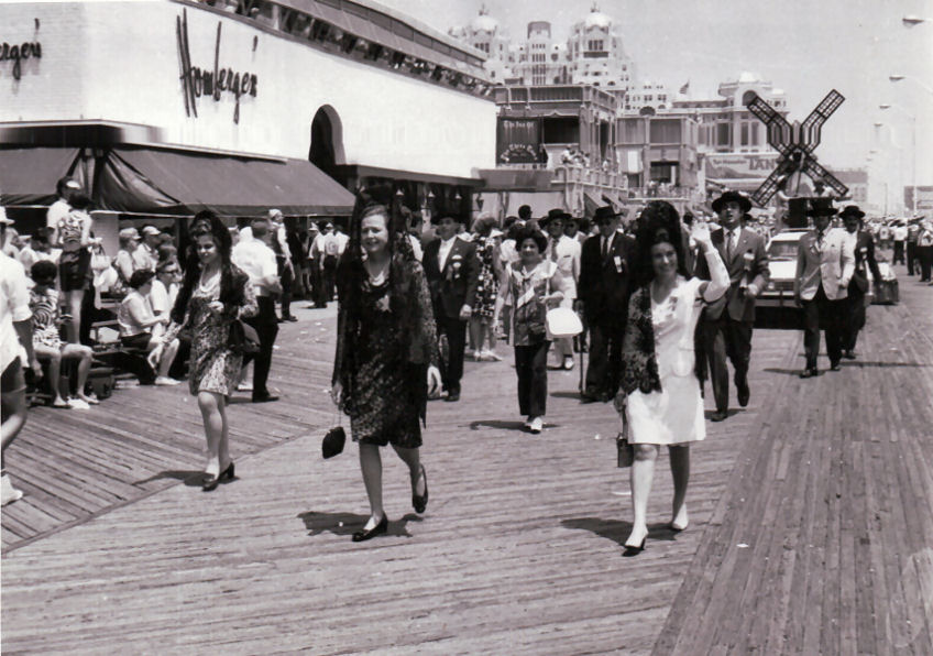 CONVENCIÓN INTERNACIONAL DE ATLANTIC CITY (New Jersey) Dos son los motivos por los que he identificado estas fotos como las de Atlantic City. 1.- El que lleva la galleta de Gobernador Electo es un hombre joven, y creo que es Roberto Sáenz Alcaide del Club de Leones Sevilla. 2.- En una de las fotos verán un edificio con el nombre de una tienda llamada "Homberger", lo he buscado en Internet, y existió desde los años 40 a los 80, una tienda de ropa de lujo en esta ciudad, con este nombre. Además, no tengo muchas más opciones, ya que en la foto se ve al PDG José Antonio Macaya, y él no ha ido a muchas convenciones Internacionales, solo muy al principio, y en las demás convenciones ya tengo las fotos claramente identificas. Una curiosidad,