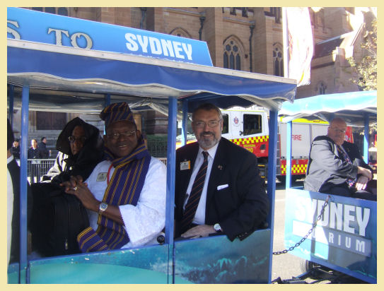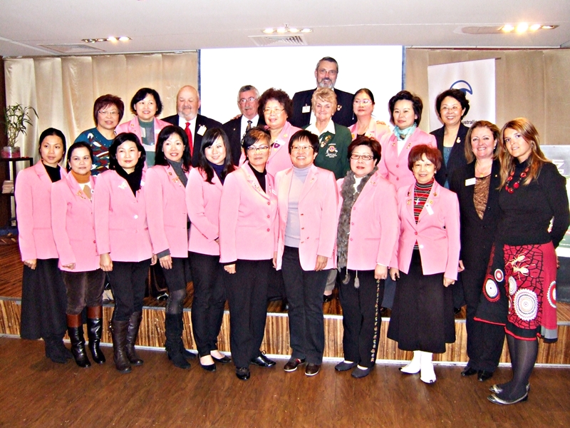 Durante dos de la noches que estuvimos en Sidney, visitamos dos club de Leones, el “Sydney Pasific” y el “Sydney Waratah” este ultimo formado por mujeres de la comunidad china de la ciudad, que por cierto muy importante en Australia. Lo simpático del club es que tenían su uniforme, que costa de unas chaquetas rosas de color fuerte, ambos clubes eran muy activos y hacían un montón de actividades de servicio. En ambos clubes como Director Internacional en ejercicio, tuve la posibilidad de intervenir y dejar un recuerdo.