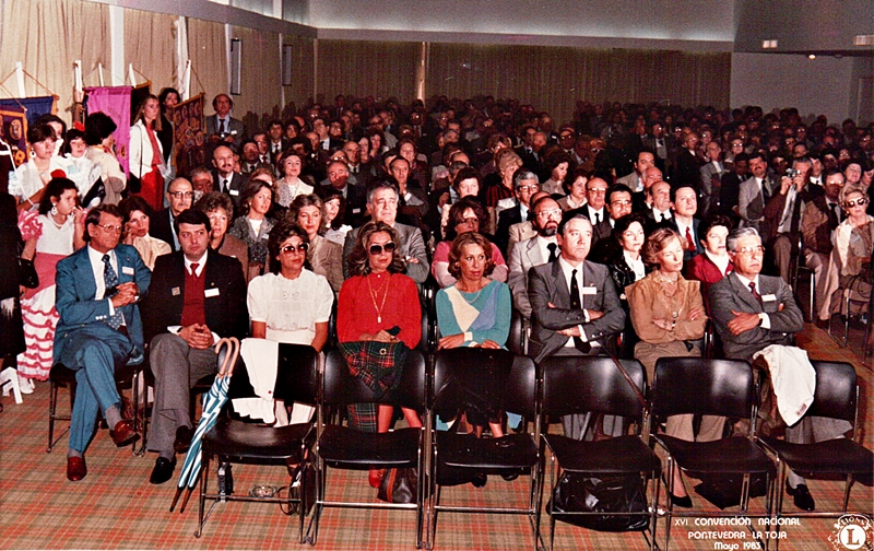 NACIONAL 1983 El primero a la derecha es el Compañero León José Macia Santana socio de Club de Leones Telde, y más tarde sería Presidente del Cabildo y luego Senador por Canarias, a su lado Jorge Sánchez y su mujer Ester. Acto Magno