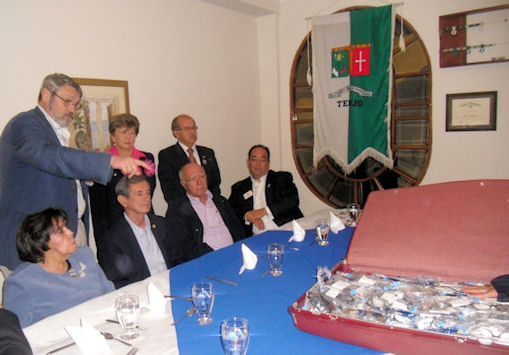 Pero lo más emotivo del viaje para mi, fue la visita al Club de Leones de Tenjo Monarca. Siempre que viajo intento hacer una visita a un Club, en este caso, solicité a mi amigo el Director Internacional Jaime Cepeda, que me organizara una visita, y que además tenía la posibilidad de llevar una maleta llena de gafas recicladas de nuestro centro en San Vicente de Raspie. Curiosamente, Jaime organizó la visita a un Club que tiene un centro oftalmológico fenomenal, que merece unos comentarios aparte. Primero visitamos el centro y luego fuimos a su sede, que es un magnífico edificio protegido, considerado patrimonio histórico, donde tuvo lugar la asamblea del Club y posterior cena de convivencia. Vino el Gobernador, varios pasados Gobernadores y nuestro amigo el DI Jaime, fue una velada muy especial y tuvimos la ocasión de entregar la maleta con 440 gafas recicladas.