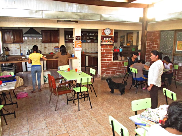 Ya por la tarde, fui a visitar el “Hogar Alberge Nuestra Casa”, para niñas que han sido violadas o abusadas sexualmente, todas por familiares cercanos, ya que en caso contrarios, normalmente vuelven con sus familias. La mayoría tiene entre los 11 y 17 años, aunque han tenido chicas de 9 años. Casi siempre, estas chicas no pueden volver a sus hogares, entre otras cosas el trauma sufrido es terrible, además de ser peligroso. Imagínense que había una niña de 11 años con su bebe recién nacido u otra chica de 15 años que estaba embarazada. Este hogar lo administra Mirna Arebalo, que es hija de un compañero León, la cual me atendió en mi visita. Aquí ellas reciben apoyo psicológico, cariño y ayuda para enfrentarse a la vida. Procuran que sigan con la vida normal, atendiendo al colegio y las más mayores aprendiendo un oficio, me pusieron ejemplos como que, una es cocinera y otra enfermera. Son las chicas que cuidan de su casa, hacen la comida, lavan su ropa, además tienen dos cuidadoras que viven en las instalaciones, que las ayudan y vigilan. La estancia media de las chicas en este centro es de entre 3 y 9 meses, de los cuales el 80 % suelen volver a las familias, cuando el agresor termina en la cárcel y la familia también recibe apoyo psicológico para superar estos momentos. La tragedia es aún mayor en caso de un embrazo, ya que al ser los agresores familia cercana, muchas veces los niños nacen con deficiencias físicas o psíquicas, lógicamente el trauma aumenta, deciros también que el aborto es ilegal en Bolivia. Solamente han tenido un caso, en que la chica ha rechazado quedarse con el niño, y fue dado en adopción. Aunque el aspecto del centro es inmaculado, ya que el cuidado de las chicas es maravilloso, las necesidades son enormes, para empezar, solamente hay plaza para 15 chicas, que conviven estrechamente en habitaciones pequeñas con tres camas cada una. La demanda de plazas son enormes, y las que no pueden ingresar tienen que ir a orfanatos sin el apoyo emocional y psicológico tan necesario en estos casos, por lo tanto quieren ampliar el centro para tener una capacidad mayor. Reciben muy poco apoyo económico de parte del estado, fíjense lo único que reciben es 9 bolivianos al día por chica para alimentación, que es un poco más de UN euro al día, pero encima, no pagan a tiempo, llevan 5 meses sin recibir las subvenciones. Se preguntarán como sobreviven, pues hacen cositas de artesanía y pasteles que venden los jueves en un mercadillo y depende de la caridad de las buenas personas, incluyendo varios Clubes de Leones de Cochabamba, que recientemente les han comprado una bomba de agua y redes anti-mosquitos para las ventanas. Mi club, me entregó 1.000 € por si veía alguna necesidad urgente y así fue, debían cinco meses de facturas de comida y estaban realmente desesperadas, así que pagué casi la totalidad de estas facturas, se pueden imaginar, el agradecimiento fue enorme.