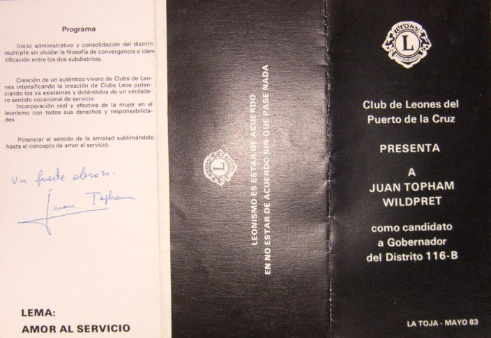 XVII Convención Nacional. Presidida por Juan Fernández Peinado como Presidente del Consejo de Gobernadores, se celebró en Zaragoza a continuación de las Primeras Convenciones de Distrito de los Distritos 116 A y B, del 10 al 12 de Mayo de 1984. La triste pérdida que conmovió al Leonismo Español del Gobernador Electo del Distrito 116 A, José López Fernández, antes de entrar en funciones, hizo que fuera nombrado Gobernador del D 116 A, a propuesta de las autoridades Leonísticas Españolas y mediante ratificación de Lions Clubs International, Pablo Villabona Carapeto. De manera que las Primeras Convenciones de Subdistritos fueron presididas por Pablo Villabona, Gobernador del D 116 A, y Juan Topham Wilpret, Gobernador del D 116 B. En el Distrito 116 A se aprobó la creación de un Premio Leonístico a la eficacia administrativa : "Reconocimiento Leonística José López". En el Distrito Múltiple se aprueban las modificaciones a los Estatutos sobre el respaldo de la Candidatura a Director Internacional que sólo será válido para dos Convenciones Internacionales sucesivas. Asimismo se aprueba la creación de un fichero en el Distrito Múltiple para que sea efectiva la no readmisión en ningún Club del Distrito Múltiple de un socio expulsado justificadamente de su Club. Hubo dos candidatos a Director Internacional, Carlos Hernández, del Club de Leones Las Palmas y Alberto Gordillo del Club de Leones Alicante 22.000, saliendo elegido para el periodo 1985/87 el compañero Carlos Hernández. En las primeras Convenciones de Subdistritos fueron elegidos gobernadores de los Distritos 116 A y B respectivamente, para 1984/85, Felipe Navarro Padilla del Club de Leones de Benidorm y Manuel Márquez Campos del Club de Leones de Torremolinos.