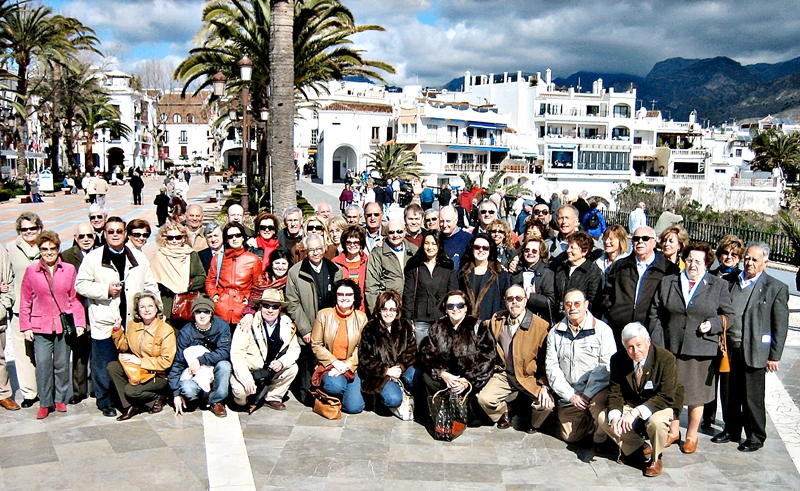 Los asistentes a las Jornadas Leonística de Nerja enel "Balcon de Europa" El Sábado por la mañana, tuvimos la primera charla, dado por el Dr. Manuel Carnero Varo, profesor de la facultad de Medicina de Málaga. Fue sobre la saludo del corazón y cuales son los hábitos que deberíamos dejar (como el tabaco) y otras que deberíamos empezar (como el deporte). Fue muy interesante y hubo muchas preguntas. Luego se organizó con todos los asistentes tres mesas redondas, para discutir las actividades de los Clubes, que fueron debatidas y presentadas por la tarde. Luego salimos todos a visitar las Cuevas de Nerja, son todo un espectáculo, realmente son preciosas. Almorzamos en un restaurante justo a lado de las cuevas. Ya por la tarde, a parte de presentar las conclusiones de las mesas redondas. Hubo dos charlas uno sobre “Leonismo y Juventud” dadas por Jacques López y Cristóbal Herrero.