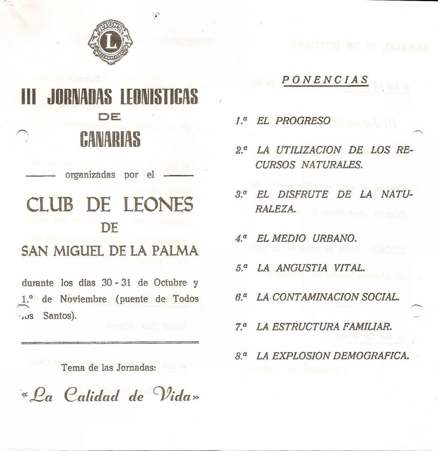 Durante los días 30 y 31 de Octubre se celebraron en la isla de San Miguel de La Palma, los actos de las III Jornadas Leonísticas de Canarias, que fueron organizadas por el Club de Leones de San Miguel de la Palma.