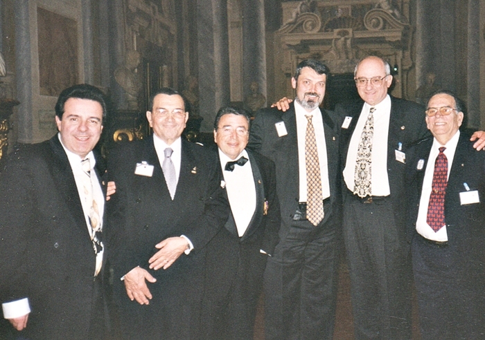 PID Phillippe Soustelle de Francia, Presidente Internacional Jean Behar, IPDG Manuel Pastor, yo, PDG de Francia Jean Comar y el Gobernador del Distrito 116-B Pedro Cabrera. Se celebrará en febrero, los días 25 al 27, el costo es de 425 € por persona en habitación doble, más 93 € por ocupación sencilla. Es caro como todas estas reuniones, pero es necesaria nuestra presencia. El precio incluye dos noches de hotel, dos almuerzos, cena de bienvenida en la sede, Hotel Baglioni que es un palacio del siglo XIX, la cena se celebrará en un jardín sobre el tejado del palacio que tiene una de las vistas más maravillosas de Florencia con la catedral y la cúpula de Brunellechi en frente. El precio también incluye la cena de Gala, que será en el famoso palacio Pitti del siglo XV, una de las más famosas pinacotecas del mundo. A ver si alguien se anima a presentar algún tema corto, y a ver si podemos estar incluidos entre los temas para presentar al Forum de Florencia, en el año 2.000. Sería un éxito más para nuestro Leonismo. Tengo el boletín de inscripción del Preforum para todos los Clubes. PREFORUM DE FLORENCIA Celebrado DURANTE los días 25 al 27 Del mes de febrero en el inmejorable marco de la ciudad de Florencia, cuna de tanta arte e historia. Ciudad de una belleza cautivadora e infinitamente bella para los que amamos el arte, Florencia es una ciudad que todo el tiempo parece poco y cada esquina es una sorpresa que hace que uno no se cansa andando por sus calles. El arte se acompaña con una tiendas magnificas y restaurantes fenomenales. Compañeros hay que ir a Florencia es una maravilla. Nuestra asistencia va en aumento, esta vez fuimos 11 los asistentes al Preforum, encabezado por nuestro presidente del Consejo Pedro Cabrera y del Gobernador del Distrito 116-A Manuel Pastor, con sus respectivas señoras, además fueron Luis Bacarías Jefe de Región II y Juan Fernández, Tesorero del D-116-A con sus señoras, nuestro Pasado Director Internacional David Fuertes, mi esposa Loly y yo. Desconozco las cifras de participación de hace más de 20 años, pero os pero asegura que estos últimos años jamás hubo una participación española tan elevada, creo poder decir que hemos quedado a la altura que corresponde a un país como el nuestro donde hemos podio participar en casi todas las reuniones. Unos días antes el presidente del Consejo y señora, mi esposa y yo, con esposas, aprovechamos unos días de descanso para visitar Roma visitando diversos monumentos entre las cuales podemos mencionar las 4 puertas santas y el recién inaugurado Domus Aurea, palacio de Nerón que tardaron 33 años en restaurar. Lógicamente estuvimos el Domingo en la plaza de San Pedro para recibir la bendición del Papa Juan Pablo II. El viernes llegamos a Florencia, donde por la tarde asistimos al Comité de coordinación y una reunión que está estudiando los posibles cambios en la organización del Forum, donde se han discutido muchas posibilidades, entre ellas la supresión del Preforum (por ser muy costosa), las supresión de los PEC para sustituirla por un tema principal con conferencias relacionadas y un orador de excepción sobre el tema principal. Lo que más debate suscitó fue la probabilidad de variar la forma de voto, cambiando el sistema actual de un voto por país a un sistema donde los países que tengan más socios tengan más votos. Por la noche una cena en el tejado de nuestro hotel con la vista sobre el famosísimo Domo de Brunelleschi, un espectáculo único. El día después, una jornada maratoniana con reuniones una tras la otra, y sin poder asistir a todas, asistimos a los 4 PEC, sesión de apertura, Consejo de Europa y clausura. Mi esposa Loly asistió a la reunión del premio Música, donde se adoptó el acuerdo excepcional en subir la edad limite a 30 años, solo por este año. Por la noche tuvimos la experiencia única de poder visitar el corredor que une el ayuntamiento con el Palacio Pitti. Este Corredor que está cerrado al público, es el que utilizaba la familia Médeci y está decorado con la colección más importante del mundo de Autorretratos, colección única que incluyen cuadros como un autorretrato de Velázquez. Está compuesto por 1.300 más de cuadros, después del paseo, terminamos cenando en los salones del propio Palacio decorados con unos frescos que dejaron impresionados a todos los comensales. Termino como siempre, animando a todos los Leones que asistan a estos actos, que dejan un recuerdo imborrable de la grandeza de nuestra asociación, donde uno vive unas jornadas de trabajo muy interesantes y una convivencia Leonística única e irrepetible dentro de nuestra Area geográfica. El próximo Preforum Europeo nos toca muy cerca, en Portugal, para ser más preciso en Lisboa los días 2 y 3 de Febrero, esperemos tener como mínimo, la misma presencia como este año. Nada más por el hecho que lo organiza nuestros vecinos lusos, creo que tenemos la obligación moral de estar presente apoyándolos en todo lo que hacen. PDG