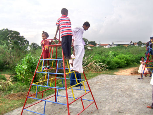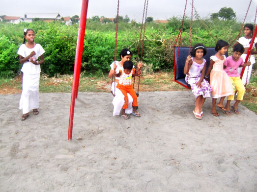 Inauguración del parque infantil patrocinado por el Club de Leones Palma de Mallorca, en Singha Village - Hambantota el día 12 de diciembre, del año 2009. En estas fotos pueden ver vistas generales del parque infantil, los que descubrimos la placa son en primer término el Presidente del Consejo Dr C J Ian, el Gobernador del Distrito 306-A2 Nimal Aluthge y yo. En otra foto, verán que estoy haciendo una prueba de resistencia, y no se rompió, por lo tanto es seguro para los niños :-))))) También se han plantado algunos árboles, que dentro de unos años serán grandes, ya que todo crece de una forma espetacular en este país. En dos años ha sido increíble como han progresado algunos de los jardines de las casas.
