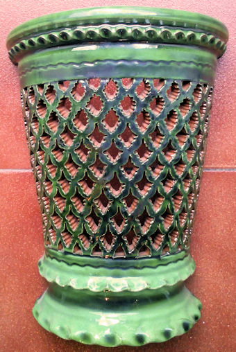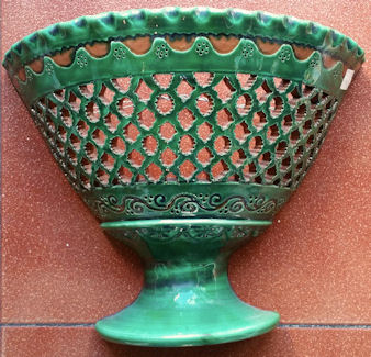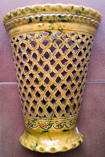 WHOLESALE - light covers Recognized as the best craftsman from Spain, in 2006. Tito is one of the most prestigious ceramic artisans in Spain, he has even been recognized as the best craftsman in Spain, for 2006. They come from a Village called Úbeda en the province of Jaen, in Andalusia. He basically hand makes these reproductions of traditional Andalusia ceramic, in other words the popular style that was used in the countryside during many centuries. The normal style had only one colour, normally, the green, and sometimes mustard, blue or cream. In 2006 he creates what he has called the "Repintado" style, which means repainted. What he does is make the pieces in the cream colour, and repaints them with these vivid colours and then they cooked the pieces again. So you can see these marvelous colored pieces, which are an exceptional pieces of art work. As you can see there are two basic styles. The classical and the "Repintado". As I told you before his classical style comes in four different basic colors, green, blue, beige and mustard. Plus all the pieces can come "Calado" or normal. The "Calado" is the cut out work you can see in the pictures. Want they do is let the ceramic dry a little for a few days and then cut it out, it's a tremendous amount of work. In the classical style you might think they have two colors, well NO. Want they do is soak the pieces in the color enamel and after carve away the paint until the natural color of the ceramic comes out, really extraordinary art work. That's why every single piece is totally different you will never have two pieces a like. The bottom line is that everything is possible in any size, any color or any style. Some craftsmen have moles, so all the plates come out in the exactly same size, but these Artisan hand throw every single piece. So the chose is infinite. As these plates are all hand thrown, they can’t be flat, they are slightly concave. The larger the plate is, more concave it has to be, if not it can’t be made.