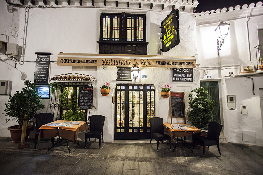 The Restaurant La Reja is situated in the heart of Mijas pueblo, on street Los Caños, 9. Most of the year they are open every day from 12:00 AM to 11:00 PM Tel.: 952.59.11.24