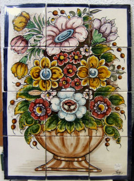 He is the craftsman I sale best the tiles, what he does is very original and very well done. Plus the choice he has is phenomenal. As you can see he is specialized in the old style of Spanish ceramic tiles. The interesting thing is that he hand makes the tiles the old way, so that are totally irregular, which gives is a great aspect, and they really look old. Everybody else uses the industrial style tiles to paint them. The simple tiles you buy for kitchens and bathrooms. I like to insist that these tiles are irregular, the border as not total strait, they are not total flat, and the painting is as if they where old, in other words irregular. And all that makes them look unique and special. These tiles besides being irregular they are also a little thicker, about 1 centimeter, about double of an industrial tile. I like to say this, as if you where to set them in a wall with industrial tiles, they would stick out a little, OK. About the designs, I like to say they are all copies from old designs, and they are very accurate and good about reproducing them. You can have any size you want made. If you have a certain place you would like to fill up just calculate how many 13x13 tiles you need and multiple by 9.75 Euros and you will have the price. Also please go into this web page: www.mijasceramic.com or write to us: OUR E-MAIL |
