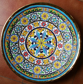 plates are enameled in 24 K gold. This work, known as "Cuerda Seca"