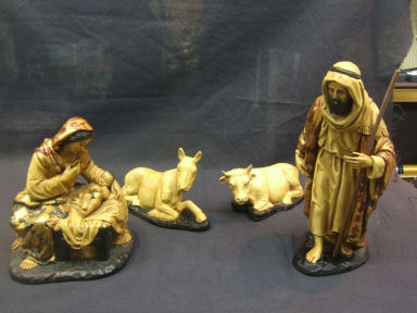Pujol es un famoso artesano de Barcelona, que se ha hecho famoso por su trabajo en las figuras de estilo barroco, su familia ha hecho esta artesanía durante generaciones, y el sigue trabajando en esta maravillosa artesanía Española. Su producción es muy pequeña, ya que trabajo solo. Como pueden ver hace solamente figuras barrocas religiosas y ángeles. Están hechos en resina, que es una material muy duro, y obviamente pintados a mano y terminados con “pan de oro”. Una de sus especialidades son los nacimientos, que son realmente extraordinariamente bellos, solamente un gran especialista podría darse cuenta que son reproducciones. Pujol es un gran artesano, creador de esculturas religiosas barrocas. Su trabajo es muy elaborado y es amante de los detalles pequeños. Cada pieza es una obra de arte de gran calidad. Su familia llevan trabajando desde el año 1956, y muchas de sus piezas antiguas ya están en diferentes museos, creo que esto demuestra la calidad de su trabajo. La altura que mencionamos, es siempre la pieza más alta del Belén, vale. Por favor también entren en esta página web: www.mijasceramic.com o escríbanos a: NUESTRO E-MAIL