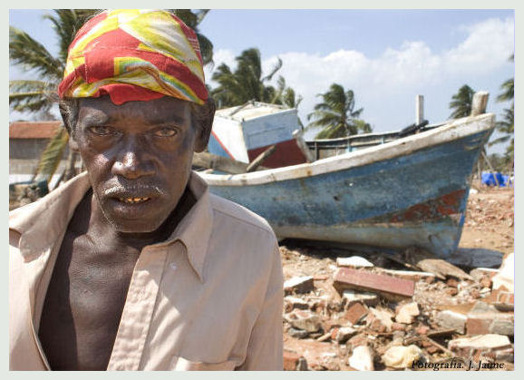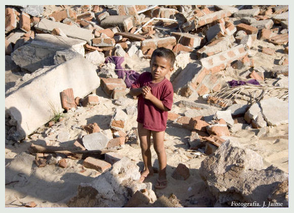 Three months on from the disaster, all across Sri Lanka the tragic victims are trying to rebuild their lives. Wherever you go, there is is an image of survival that is humbling as we witness these broken people trying to get through each day. In the immediate aftermath there was chaos and confusion as victims numbed by the loss of so many loved ones tried to make sense of the tragedy. It is only now, with the passing of time that the pain of grief is beginning to hit them. We found these refugees in a makeshift camp close to the village of Pasikudah on the road to Trincomalee, where the tidal wave has ripped bridges and roads making the distribution of aid even more difficult. Just a few hundred metres from the clutch of flimsy thatched shacks is the rubble that used to be their homes. The entire community was reliant on fishing and they have lost absolutely everything in the disaster. Villagers pick among the rubble, looking for anything they can salvage, carrying it back to the camp. The ghosts are everywhere. A plastic photo album lies among the scattered debris and when we pick it up it is a stark reminder of just how vital life was in this strong community. The image of three smiling girls is barely visible through the snapshot soaked in tsunami water. Like most of the people in the village, they are missing. In the camp, smoke swirls from open fires as the fishermen that are left sit mending nets in the hope that they can work again. One fisherman told us: “We have nothing here. We lost 200 of our people and everyone is still trying to understand why this happened. It’s terrible. “But all we can do now is live from day to day. We have had hardly any help so we are trying to survive by ourselves. But every day is a hardship.”