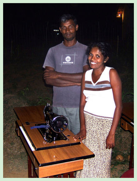 actualmente trabaja de noche en el puerto de Hambantota. Ella hace almohadas,