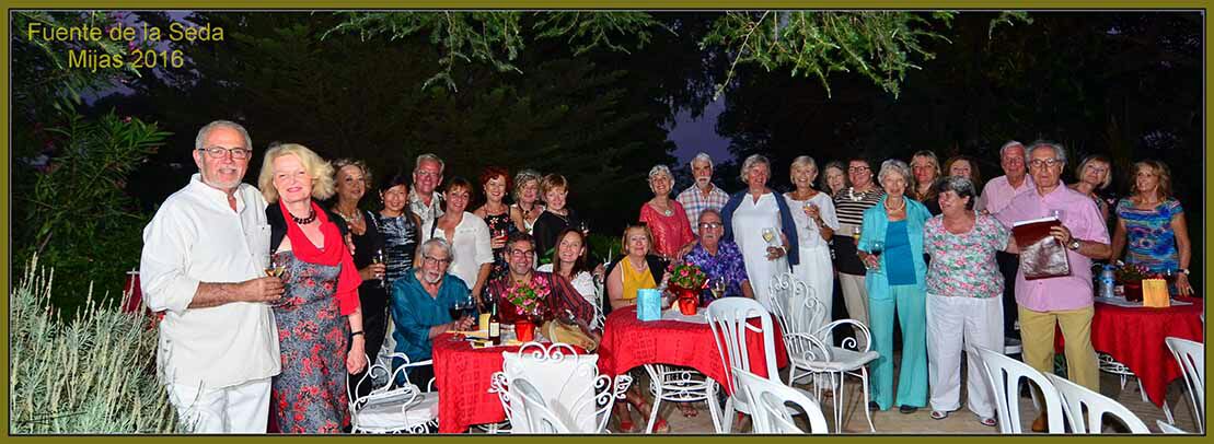 Nuestro socio Bernard y su encantadora esposa Andrea, ofreció su casa para organizar una cena - concierto en su jardín, para los socios de nuestro club. Contratamos un catering para tener una cena después del concierto e invitamos una violinista y a un guitarrista, que nos deleitaron con su música. Cobramos 35 € por persona y después de disfrutar de una magnífica velada a la luz de la luna con bellísima música, nos dejó 516 € a la cuenta de actividades de nuestro Club. Como ven, con un poco de imaginación, se pueden hacer actividades casi sin esfuerzo (salvo los anfitriones) y se puede recaudar fondos para las actividades del Club, además os aseguro que fue una velada encantadora. Hay que reconocer, que la casa de nuestros anfitriones y sobre todo su jardín es uno de los más bellos y más antiguos de Mijas, construido en los años cincuenta, cuando el turismo, casi no existía. Nuestro club está muy agradecido al matrimonio Bernard y Andrea, socios recién ingresados a nuestro Club. Bernard y Andrea es el matrimonio que está a la izquierda de la foto. Gustó tanto, que nuestro Presiente del Club ha ofrecido su casa y jardín para hacer la asamblea ordinaria del mes de Septiembre con un catering en su casa, estamos deseando que llegue el momento, es muy importante que las reuniones del club sean animadas y no demasiado largas, eso hace que los socios estén deseosos de asistir a las mismas, Recibimiento de los participantes Del campamento juvenil