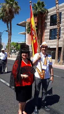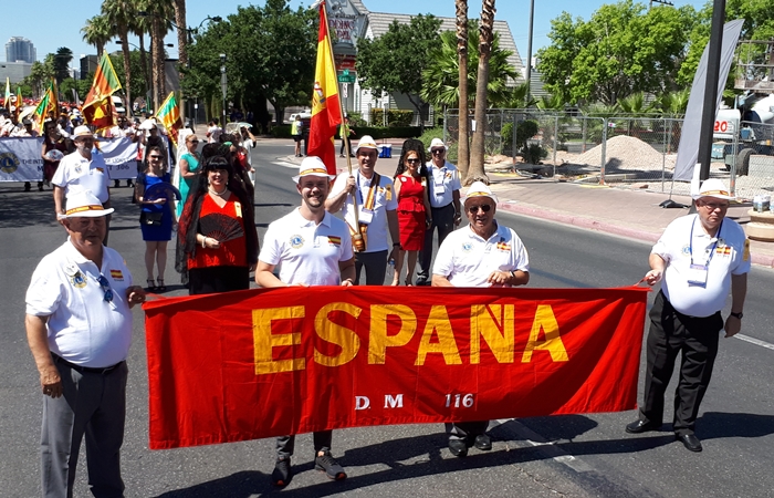 El día 30 de Junio, el gran desfile Internacional, con todo el colorido que tiene, llevando los trajes típicos todos los países, muchos con carruajes o bandas de música, destacar los mejicanos que iban vestidos como calaveras. Como siempre, las señoras con las peinetas y mantillas, fue la gran atracción de nuestra delegación. Hacer mención que después de 23 asistencias a estos desfiles, fue la primera vez que todo funcionó puntualmente, terminando a la hora prevista, cosa que se agradeció, ya que el calor en Las Vegas es agobiante.