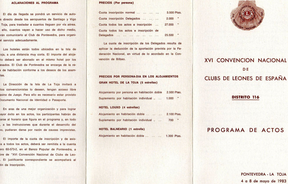 ACTA DE LA XVI CONVENCIÓN NACIONAL, DE CLUBS DE LEONES DE ESPAÑA (Distrito 116) CELEBRADA EN LA TOJA (Pontevedra) del 11 AL 14 DE MAYO DE 1.983. ACTO