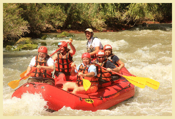 La mañana siguiente fuimos a ver el famoso Cañón de Achuel, es un largo cañón con muchas formaciones rocosas y de colores muy variados, almorzando sobre uno de los muchos pantanos que tiene el rio, y por la noche cenamos en con la familia de mi yerno, Sonia, y como no podía ser de otra forma, comimos un asado. Al día siguiente, fuimos a hacer rafting con gran preocupación de mi esposa, decía que estaba loco, pero fue una experiencia muy divertida, lo pasamos muy bien, el paisaje era precioso y fuimos atendidos por un amigo de mi yerno con el mote “El Pollo”, total nos mojamos y reímos un montón. Almorzamos el Chivito de la zona y por la tarde visitamos la bodega más importante de San Rafael, Bianchi. Casualmente una de las directoras de la bodega es la actual presidenta del Club de Leones de San Rafael, y nos ofrecieron una tour muy especial con cata de vinos reserva y cavas incluidos, sufrimos mucho…….. por tener que dejar la bodega J Por la noche cena de convivencia con los compañeros del Club de San Rafael, con intercambio de recuerdos incluido. Los Leones de San Rafael son un grupo de gente maravilloso, con muchos socios jóvenes y muy dinámicos, me encanto conocerles. En Argentina es verano y siendo vacaciones, lograron reunir a 20 leones para atendernos, verdaderamente nos sentimos todos como en casa, ojalá algún día nos visiten.