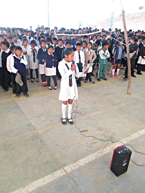 Llegué tarde y fui directamente a la cama, a la mañana siguiente me vinieron a buscar temprano, para llevarme a la población de Sacaba, al sur de Cochabamba. Fuimos a un suburbio de recién creación, hace unos 6 años empezaron a desplazar la población aquí, entre otras razones, los terrenos son más baratos, aquí visitamos la “Unidad Educativa Nuevo Amanecer”. La edificación original del colegio, fue construida por los lugareños, pero luego el gobierno en diferentes fases han construido dos bloques de aulas que están bastante bien, y esperan construir una tercera, ya que la población está creciendo rápidamente. Actualmente hay 777 niños en este colegio, para una población de unas 200 familias, por cierto aquí no hay control de natalidad. Aunque las edificaciones son modernas y buenas, están prácticamente vacías, los profesores no tienen mesas, no hay estanterías y no tienen ordenadores, de hecho me han pedido 20. Incluso los alumnos no tenían mesas, tenían que estar sentados en sillas de plástico, solamente hace unos pocos meses han recibido mesas y sillas nuevas, después de varios años solicitando este material. Después de inspeccionar la escuela, todos los alumnos se pusieron en formación en el patio del colegio y cantaron el himno de Bolivia y diferentes alumnos dieron mensajes de bienvenida. Seguidamente nos dieron una especie de caldo de arroz, papas y carne de bienvenida.