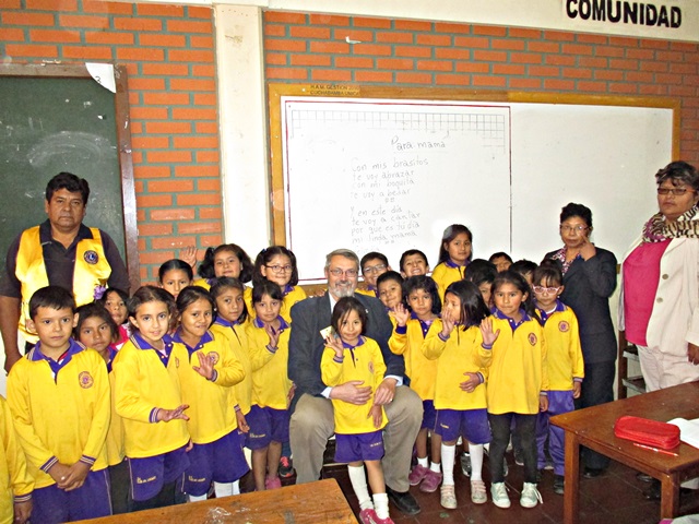 Seguidamente volvimos al centro de Cochabamba, para visitar otra escuela llamada “Club de Leones”, construido por los Leones y que casualmente este mes cumple 50 años. Fue muy simpático ver todos los niños chicos con unas camisetas amarillas con el logo de nuestra asociación, y los más mayores con una corbata con el logo, de hecho compré una como recuerdo de mi visita. Necesidades son menores, pero quieren construir una enfermería, en un lateral de una de las edificaciones.