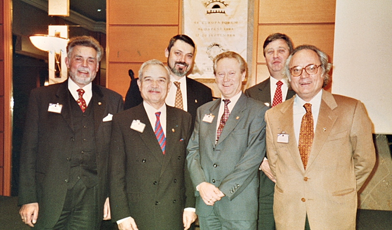 Detras yo y el el Gobernador del Distrito 116-B Rod Weale y delante cuatro de los Directores Internacionales de Europa, de izquierda a derecha Ernst A. Musil (Austria), Jean Oustrin (Francia), Bruno Ahlquist (Suecia) y Paolo Bernardi (Italia) Luis Dominguez Calderón |