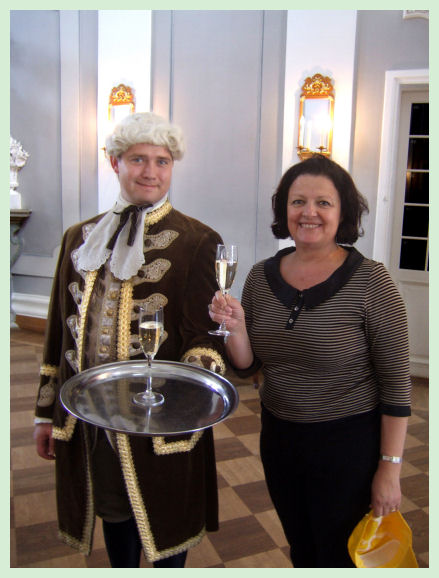Jarmo nos sorprendió al final de la visita con un Estonio vestido con ropa de época ofreciéndonos una copa de champagne, todo un lujo. Seguidamente cogimos el autobús para ir a almorzar a un restaurante en el campo, una preciosa casona del siglo XIV, donde almorzamos una deliciosa comida típica del lugar, entre otros manjares, una sabrosa sopa de salmón, realmente exquisita.