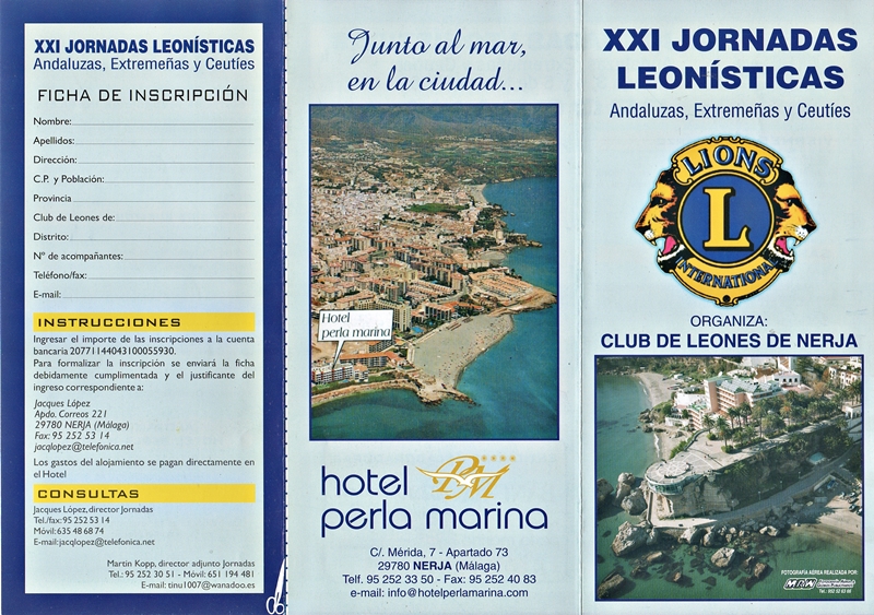 Nuestro Gobernador Mauro Pérez entregado un reconocimiento al PDG Demetrio Fernández Insistí bastante en la colaboración de todos para que la Campaña sea un éxito, tanto en la recaudación, como en la publicidad que puede producir para nuestra Asociación. Seguidamente las Jornadas fueron clausurados por el Gobernador y por último la cena de gala con baile en el hotel. El día después, por la mañana, nos dio una charla el Cronista oficial de Nerja, Don Pascual, para luego darnos un paseo por el pueblo, para seguidamente ir a Frigiliana para ver este precioso pueblo andaluz, donde almorzamos comida típica de la zona. Otra vez más felicitar al Club de Nerja y a todos sus socios por la hospitalidad y por saber hacer bien las cosas. ¡VIVA LOS LEONES DE NERJA! Fecha del Correo 9/03/2006