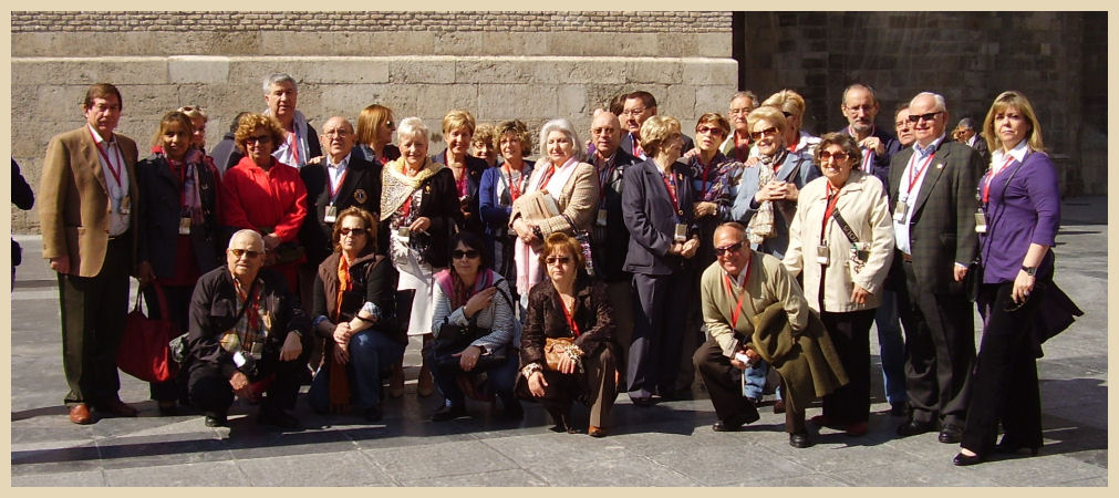 El sábado visitamos alguno de los lugares de interés de Zaragoza, que procede del antiguo topónimo romano Caesaraugusta, nombre que recibió en honor al emperador Cesar Augusto, y que llego a nuestros días a través del árabe Saragusta. Empezamos por visitar la Catedral - Basílica de Nuestra Sra. del Pilar, el templo barroco más grande de España, seguidamente la Catedral del Salvador (La Seo) mezcla de románico, gótico, mudéjar y barroco, a continuación el Palacio de la Alfajeria, y así pasamos la mañana, viendo y recorriendo tan magnífica ciudad. Al medio día comimos en el hotel acompañados de los C.L del Club de Zaragoza y por la tarde tiempo libre para visitar esas callejuelas del centro de Zaragoza donde hay grandes tabernas que con sus aperitivos quitan las ganas de cenar, en la cena recibimos la visita de algunos de los C.L de Zaragoza, que nos comentaros que el Domingo se pasarían por el Hotel, para acompañarnos en otra visita a la ciudad, no diciéndonos nada de la sorpresa que nos tenían guardada para ese Domingo excepcional. No podéis ni imaginaros como se han portado los compañeros del Club de Zaragoza, su ayuda ha sido primordial.
