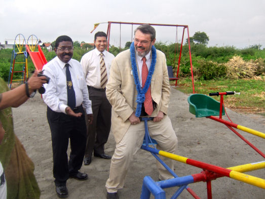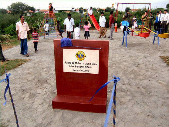 Inauguración del parque infantil patrocinado por el Club de Leones Palma de Mallorca, en Singha Village - Hambantota el día 12 de diciembre, del año 2009. En estas fotos pueden ver vistas generales del parque infantil, los que descubrimos la placa son en primer término el Presidente del Consejo Dr C J Ian, el Gobernador del Distrito 306-A2 Nimal Aluthge y yo. En otra foto, verán que estoy haciendo una prueba de resistencia, y no se rompió, por lo tanto es seguro para los niños :-))))) También se han plantado algunos árboles, que dentro de unos años serán grandes, ya que todo crece de una forma espetacular en este país. En dos años ha sido increíble como han progresado algunos de los jardines de las casas.