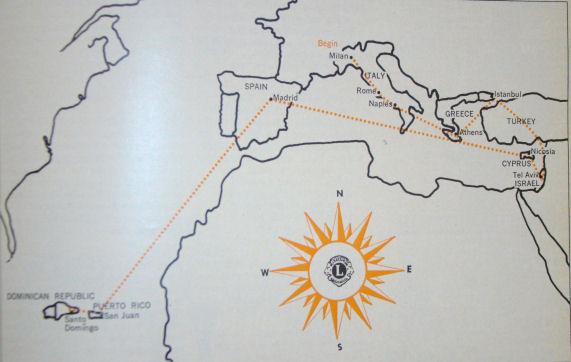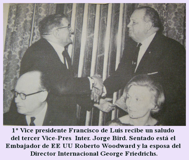 En el periodo de una semana, Lions Internacional ha resucitado esta vieja conexión de una forma nueva. Con la creación de los Clubes en Madrid y Santo Domingo, los dos países se convirtieron respectivamente los 127º y 128º en entrar el orden humanitaria del Lionismo. Pres. Inter. Claude M. De Vorss, acompañado por el Tercer Vice-Pres. Jorge Bird, volaron primero a España y luego a la República Dominicana para participar en las ceremonias de presentación. En ambos países, ellos se reunieron con los líderes del gobierno. El presidente presentó la medalla Leonístico “Jefe de Estado” al español Francisco Franco. El Generalísimo Franco dijo “Yo espero que España será unos de estos países fuertes en el Leonismo”. En adición a la historia nacional, ambos clubes tiene algo en común. Sus reuniones estuvieron bien atendidos por delegaciones de los Clubes padrinos; 51 Leones portugueses para Madrid y Leones de Puerto Rico para Santo Domingo. Ambos clubes, también, tienen miembros que representa una selección de sus ciudades, líderes del mundo de negocio, profesional e Industrial. Ambas cartas constitutivas, fueron eventos señalados, el establecimiento del Club de Madrid ha tenido una distinción adicional impresionante. Ha sido la primera vez que una organización de servicio, he presentado una carta constitutiva en España. |