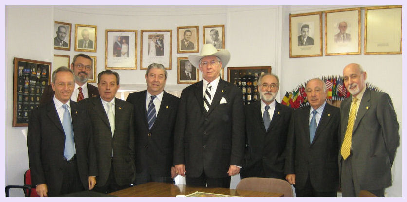 | VISITA DEL PRESIDENTE INTERNACIONAL A ESPAÑA De izquerda a derecha PDG Demetrio Fernández, yo, PID David Fuertes, DG del 116-B Cristóbal Lara, Presidente Internacional Jimmy Ross, DG del 116-A Antonio Gundín, Presidente del Consejo Pedro Bellón y PDG José Luis Masián.