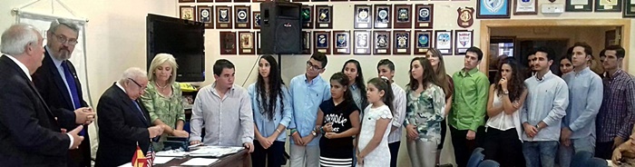 La plaza estaba llena de personas y compañeros de la costa, además de muchísimos vecinos, miembros del Club de los Clubes Leos y representación del ayuntamiento y autoridades locales. Todo un éxito, nos hicimos un montón de fotos. Seguidamente nos desplazamos al Huerto La Yuca donde se plantó “El árbol de la Vida”, con la presencia del Alcalde de Málaga, Francisco de la Torre. Después nos desplazamos a la sede de la “Confederación de Peñas Malagueñas”, que cedió el local a May Ramírez, Asesor Leo del Distrito 116-B, para un acto especial para los Jóvenes Leos. Nuestro presidente dio un mensaje especial para ellos, y se entregó la carta constitutiva del nuevo Club Leo La Lagunilla Málaga Ilusión y otra sorpresa más, May entregó la solicitud de otro club Leo El Palo Málaga Ilusión. Se aprovechó la circunstancia para entregar el pin a los socios nuevos de los Clubes Leos de Málaga Ilusión, Málaga Limonar y Nerja. Al final hubo un aperitivo para todos los jóvenes presentes. El almuerzo fue organizado en el Hotel Molina Larios. Primero un generoso aperitivo en el patio del Hotel, para luego ir al comedor, donde hubo una serie de actos importantes. Además del mensaje del Presidente Internacional a todos, se entregó la insignia a los socios nuevos, destacando el Club de Leones Málaga Limonar con 3 socios y Málaga Ilusión con 25 socios nuevos y además se nombraron a 10 más que no pudieron asistir.