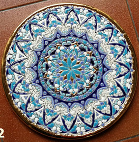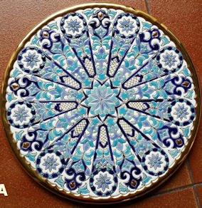 plates are enameled in 24 K gold. This work, known as "Cuerda Seca"