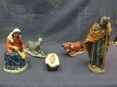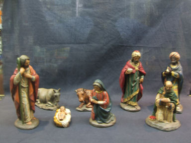 Pujol es un famoso artesano de Barcelona, que se ha hecho famoso por su trabajo en las figuras de estilo barroco, su familia ha hecho esta artesanía durante generaciones, y el sigue trabajando en esta maravillosa artesanía Española. Su producción es muy pequeña, ya que trabajo solo. Como pueden ver hace solamente figuras barrocas religiosas y ángeles. Están hechos en resina, que es una material muy duro, y obviamente pintados a mano y terminados con “pan de oro”. Una de sus especialidades son los nacimientos, que son realmente extraordinariamente bellos, solamente un gran especialista podría darse cuenta que son reproducciones. Pujol es un gran artesano, creador de esculturas religiosas barrocas. Su trabajo es muy elaborado y es amante de los detalles pequeños. Cada pieza es una obra de arte de gran calidad. Su familia llevan trabajando desde el año 1956, y muchas de sus piezas antiguas ya están en diferentes museos, creo que esto demuestra la calidad de su trabajo. La altura que mencionamos, es siempre la pieza más alta del Belén, vale. Por favor también entren en esta página web: www.mijasceramic.com o escríbanos a: NUESTRO E-MAIL