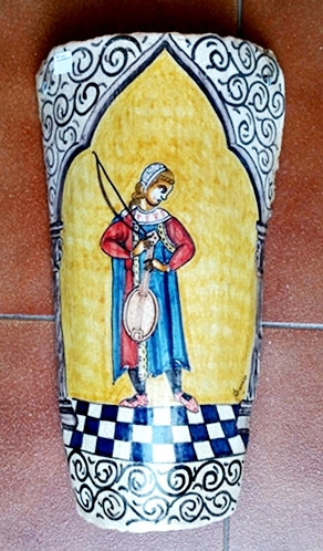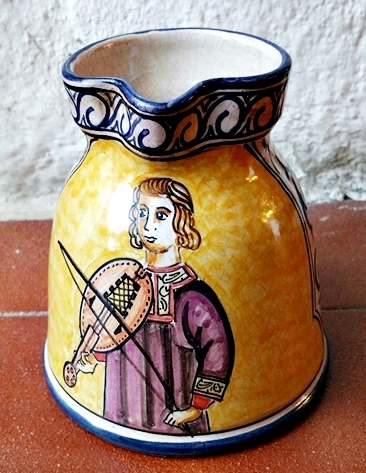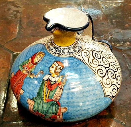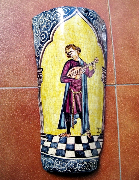 Bruno es uno de estos artistas que trabaja solo, guardando sus secretos. Es uno de mis artistas favoritos y desde luego una cerámica extremadamente rara. La única ayuda que tiene es la de su padre. Lo que realmente hace Bruno, es recrear la cerámica Medieval Española de entre los siglos XII y XIII. Son copias de piezas originales de aquel periodo, muchos de los dibujos él los ha copiado de antiguas pinturas y libros incunables, ya que la cerámica original de aquella época es extremadamente rara de encontrar. Un tema importante es que esta cerámica es ÚNICAMENTE decorativa, no es apto para alimentación. El motivo es que estas piezas están “craqueladas”, que es forzar unas grietas minúsculas en la superficie, para darle un aspecto antiguo. Básicamente lo que hacer, es abrir el horno antes de estar totalmente frio, sacan las piezas y echan agua fría sobre la piezas. Esto hace que la superficie de la pieza, aparezcan esta grietas minúsculas, que le da este aspecto tan original. Pero obviamente, después de realizar esto, ya no se puede usar para la alimentación. Si piensa encargar una gran cantidad de piezas, olvidedo, personalmente tengo que esperá meses para conseguir algunas piezas. Actualmente tengo bastantes pocas piezas en la tienda. Como pueden ver, hace una pequeña variedad de piezas, unas cuantas jarras y tejas (El pinta sobre tejas viejas autenticas, tiene un aspecto fenomenal). Pero si tiene una gran variedad de diseños, princesas, músicos, bufones y figuras religiosas. Si tiene un dibujo que quiera reproducir, el lo puede hacer, pero no le de prisa, necesita su tiempo. ¡Vale! Por favor también entren en esta página web: www.mijasart.com o escríbanos a: E-MAIL |