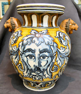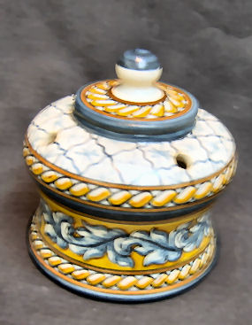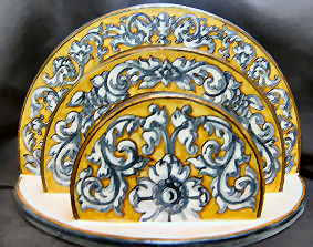 Teresa es el nombre de la esposa del artista, no me he preguntado el por qué usa este nombre, un día se lo voy a preguntar?)))) Ellos son del pueblo de Puente del Arzobispo en Toledo, que está situado en el centro de España. El trabaja solo y lo hace todo él mismo, fabrica muy pocas piezas, viéndolas comprenderán el porqué. El detalle en las piezas es increíble, en alguna pieza he hecho una foto más detallado de forma que pueden ver lo que quiero decir. Tengo clientes que vienen todos los años con la esperanza de encontrar alguna pieza suya, desgraciadamente como pueden ver, tengo muy pocas piezas suyas. El ha hecho la vajilla para nuestra princesa Elena (la mayor), cuando se casó. Algunas de las piezas que ven en las fotos, son las mismas que fueron hechas para ella, pero con la diferencia que en el centro había pintado su escudo real. Obviamente no puedo vender estas piezas, pero podemos hacer piezas para ustedes con su escudo familiar o con lo que quieran en el centro. Pero prepárense a pagar bastante dinero, ya que es muy caro. La razón es muy sencilla, tomaría meses en hacer una vajilla, y tiempo es dinero. Están viendo lo que se conoce como estilo renacimiento, que es muy laborioso. Otra diferencia importante es que este artista usa unos esmaltes mates, mientras que todos los demás unan esmaltes con brillo. Esto le da a su trabajo un aspecto mucho más sobrio, pero a la vez único en su género. Por favor también entren en esta página web: www.mijasceramic.com o escríbanos a: NUESTRO E-MAIL |
