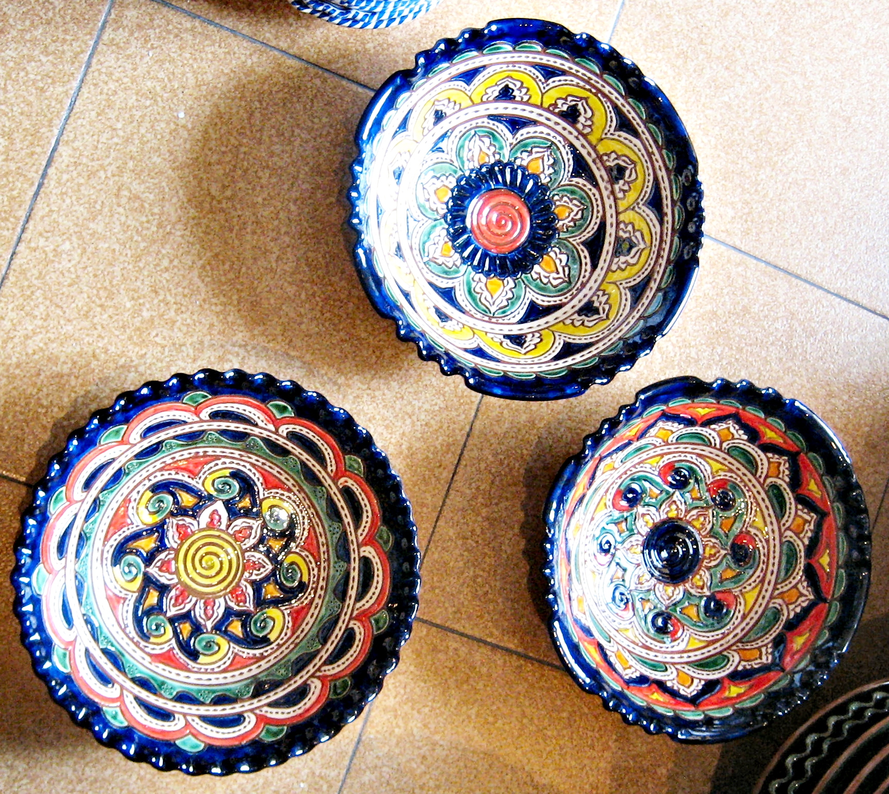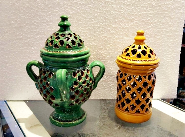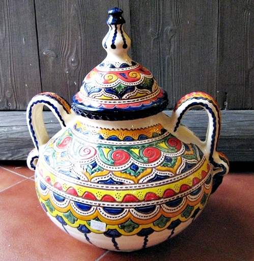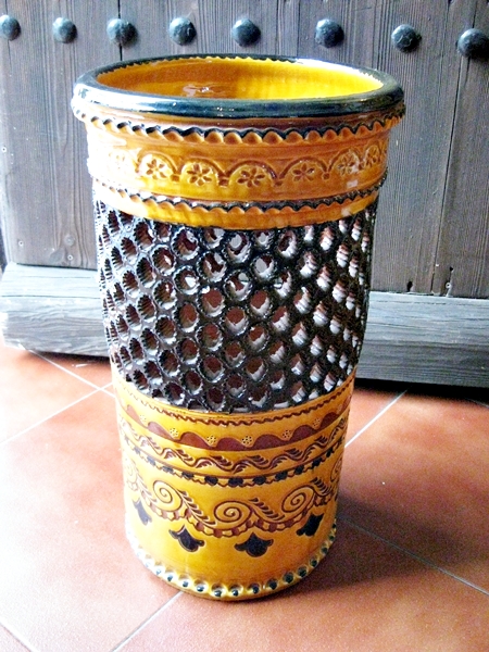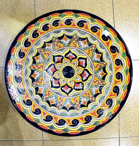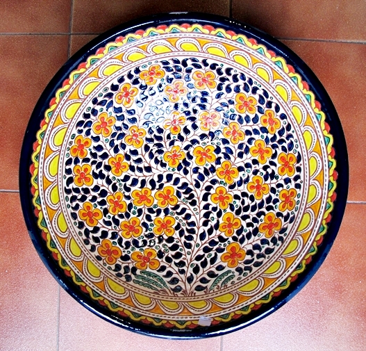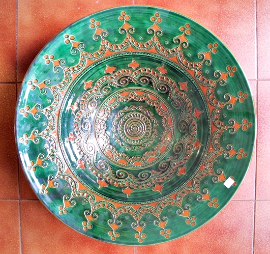 Tito es uno de los nombres con más prestigio en España, incluso ha sido reconocido como el mejor artesano de España en el 2006. El viene de un pueblo llamado Úbeda de la provincia de Jaén, en Andalucía Básicamente él hace a mano estas reproducciones de cerámica tradicional andaluza, dicho de otra forma cerámica popular, que fue usado en el campo durante muchos siglos. El estilo normal tenía un solo color, normalmente el verde, y a veces ocre, azul o crema. En 2006, el creó un estilo llamado “repintado”. Lo que hace es coger las piezas de color crema y los repinta con estos colores tan vivos, volviendo a cocerlos otra vez más. De esta forma pueden ver estos maravillosos colores, que son un trabajo excepcional de artesanía Española. Como pueden ver hay dos estilos diferentes, el clásico y el “Repintado”. Como dije antes, el estilo clásico viene en cuatro colores básico, verde, azul, crema y ocre. Además todos las piezas pueden venir “calados” o normal. El calado, es el corte y perforación que hacen y pueden ver en las fotos. Lo que hacen es esperar que se seque un poco la cerámica durante algunos días y cortar estos agujeros, es un trabajo tremendo. En el estilo clásico, ustedes pueden pensar que hay dos colores, pues no, lo que hacen es meter las piezas en el esmalte y luego quitan el esmalte hasta que el color de la cerámica vuelva a salir, realmente es un trabajo extraordinario. Por esto cada pieza es totalmente diferente, nunca tendrá dos piezas iguales. Por lo tanto, se puede decir que cualquier pieza se puede hacer en cualquier tamaño o estilo. Algunos artesano tienen moldes para hacer los platos, por lo tanto todos tiene el mismo tamaño, pero este artista tira a mano todas las piezas. Por ello, no pueden ser totalmente planos, y son ligeramente cóncavos. Si más grande es el plato, más cóncavo tiene que ser. Por favor también entren en esta página web: www.mijasart.com o escríbanos a: NUESTRO E-MAIL |
